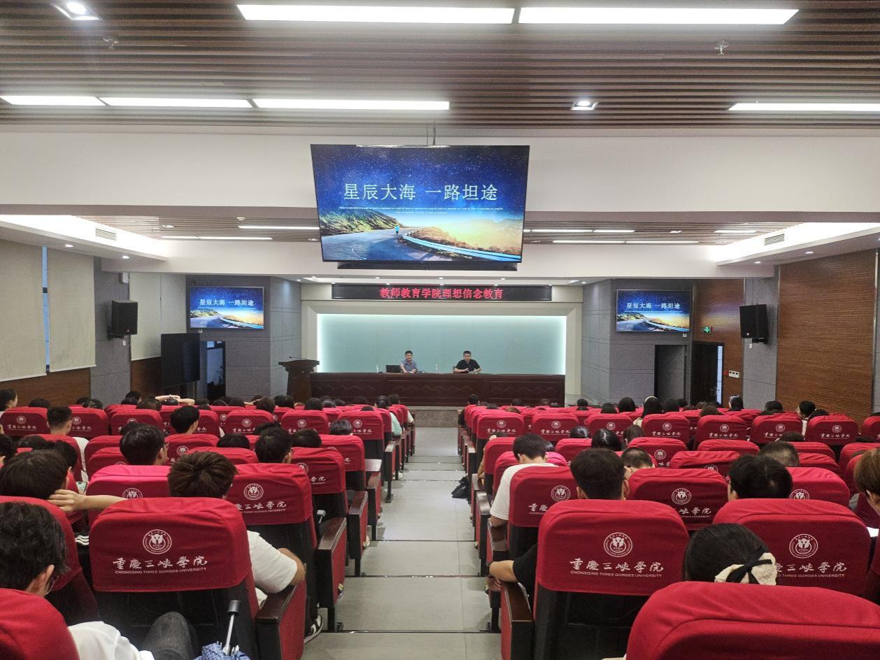 2025年9月12日,betway88西汉姆联在科技楼2楼连廊会议室举办了2025级新生理想信念教育讲座。讲座邀请了重庆市万州高级中学副校长张学明主讲,betway88西汉姆联副院长黄成毅主持,2025级全体新生参会。