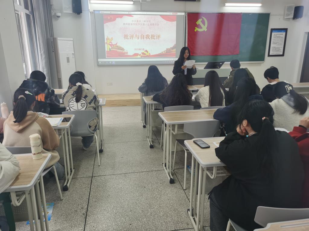 为扎实推进党史学习教育,严格全面从严治党要求,切实加强党员党史学习教育,夯实党支部基本建设,我院学生第一党支部于2023年3月2日在博学楼1栋306召开组织生活会。党支部书记高曼同志、组织委员兼纪检委员陈雨、辅导员鞠小勤老师、周岭老师及全体党员参加。