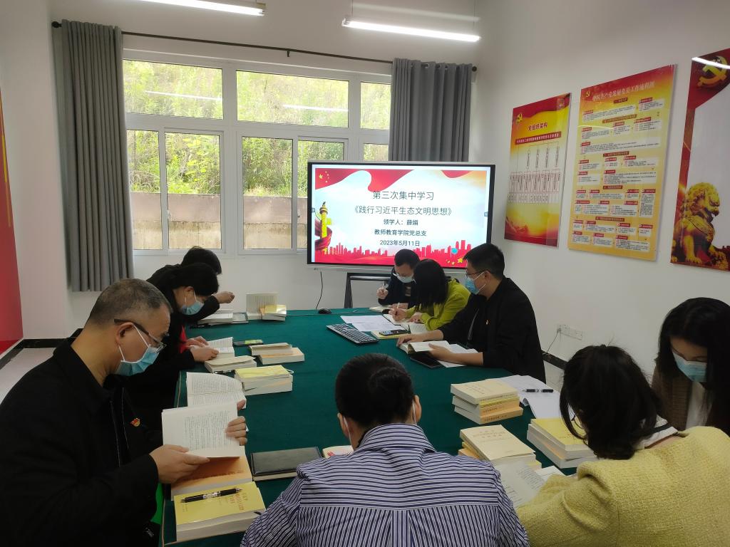 集中学习后,院长、党总支副书记潘勇和教工第一支部书记沙爱龙结合工作实际,分别以“做习近平生态文明思想的坚定信仰者、忠实践行者、不懈奋斗者”和“生态、生态文明与生态文明教育的概念”为主题进行交流发言。