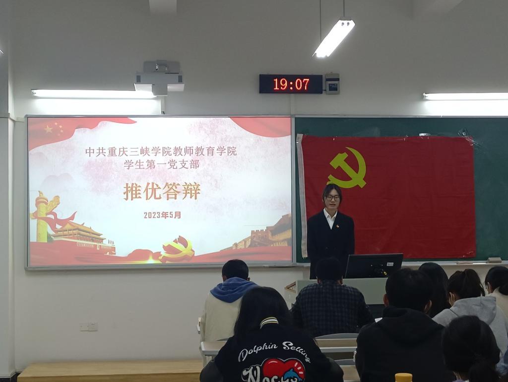 5月11日,重庆三峡学院betway88西汉姆联学生第一党支部于博学1-206召开发展对象推优答辩会。本次会议由betway88西汉姆联学生第一党支部书记鞠小勤主持,专职组织委员曾成明、支部组织委员兼纪律委员周岭同志参会。此次推优答辩会本着公正、公平、公开的原则,对发展对象进行综合素质考察。