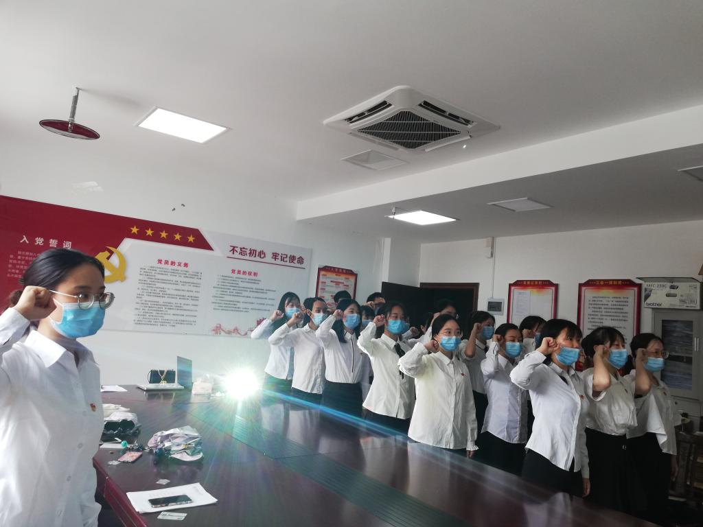 本次入党宣誓仪式由赵彦佳主持,仪式在庄严雄壮的《国际歌》中拉开帷幕,主持人首先宣读了新党员名单,再对各位优秀同学加入中国共产党表示祝贺,并强调各位预备党员在预备期端正入党动机,牢记全心全意为人民服务的宗旨,在生活和工作中努力学习,勤奋刻苦,提高自身的道德素质和文化修养,发挥先锋模范作用。随后,由预备党员代表发言,深学笃用习近平新时代中国特色社会主义思想,提高专业知识,利用科学知识为人民服务。随后21名预备党员同志全体起立,由张嘉欣同志领誓,大家队列整齐,举起右手,庄严宣誓。最后在庄严的《国歌》声中圆满结束。