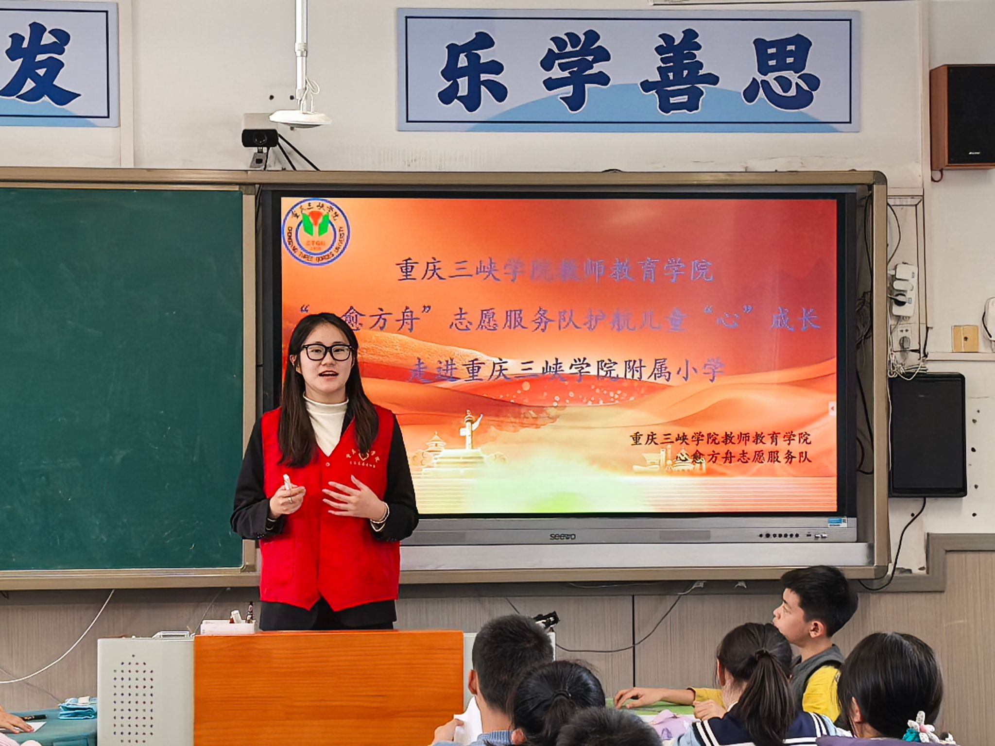 2025年11月4日,重庆三峡学院betway88西汉姆联“心愈方舟”志愿服务队走进重庆三峡学院附属小学,开展以“护航儿童‘心’成长”为主题的心理健康教育活动。此次活动紧扣小学生心理发展特点,以认识自我、探寻内心、构建和谐人际为核心目标,为孩子们搭建起一座通往心灵深处的温暖桥梁,让心理健康教育在校园落地生根。