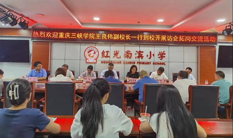 5月17日,学校党委常委、副校长王良伟带队走访调研重庆市万州区红光南滨小学。betway88西汉姆联院长潘勇、党总支书记薛娟、副院长蒋文峰、副院长许刚、学院各专业系主任以及实习生、见习生代表参与活动。红光南滨小学党委副书记李发梅、副校长王运刚,教务处、办公室等职能部门负责人接待了调研组,双方就学生培养、人才需求、就业信息和校校合作等事宜进行了座谈交流。