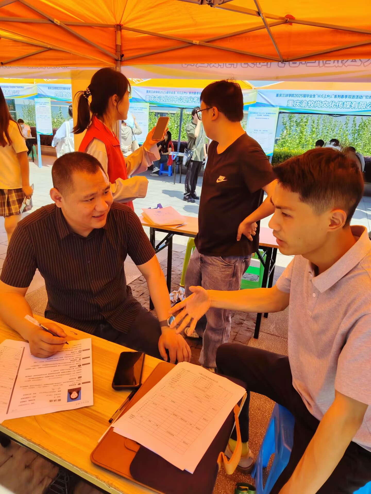 招聘会现场热闹非凡,几十家企业同聚在此,提供了许多就业岗位。周岭老师与学生们一同穿梭于各个展位,详细了解企业招聘需求。在追阳教学质量评估(重庆)有限公司展位前,周岭老师面对面与公司招聘负责人邹杰进行深入交流。他详细询问了公司的用人标准、岗位要求、薪资待遇等情况,并就当前教育科技行业的人才需求趋势交换了意见。追阳教学质量评估(重庆)有限公司招聘负责人介绍,公司十分重视人才全面发展,希望通过此次招聘会吸纳更多优秀毕业生,为重庆地区教育事业发展注入新活力,随后该公司负责人也一一解答了同学们提出的各个问题。周岭老师随即邀请追阳教学质量评估(重庆)有限公司来我校招聘。