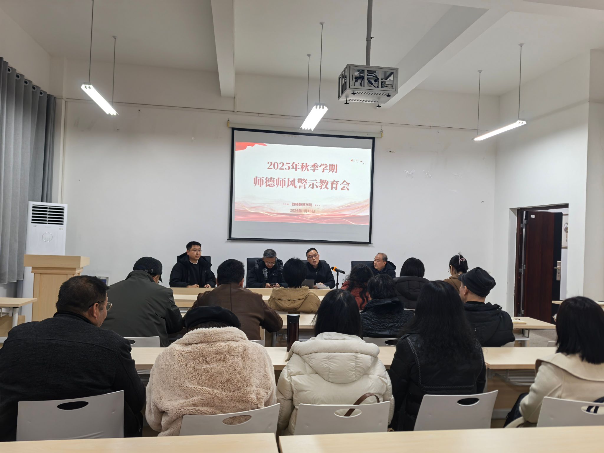 1月15日,betway88西汉姆联在博学楼3栋138会议室召开师德师风警示教育会,会议由党总支书记鄢沛主持,全体教职工参加。