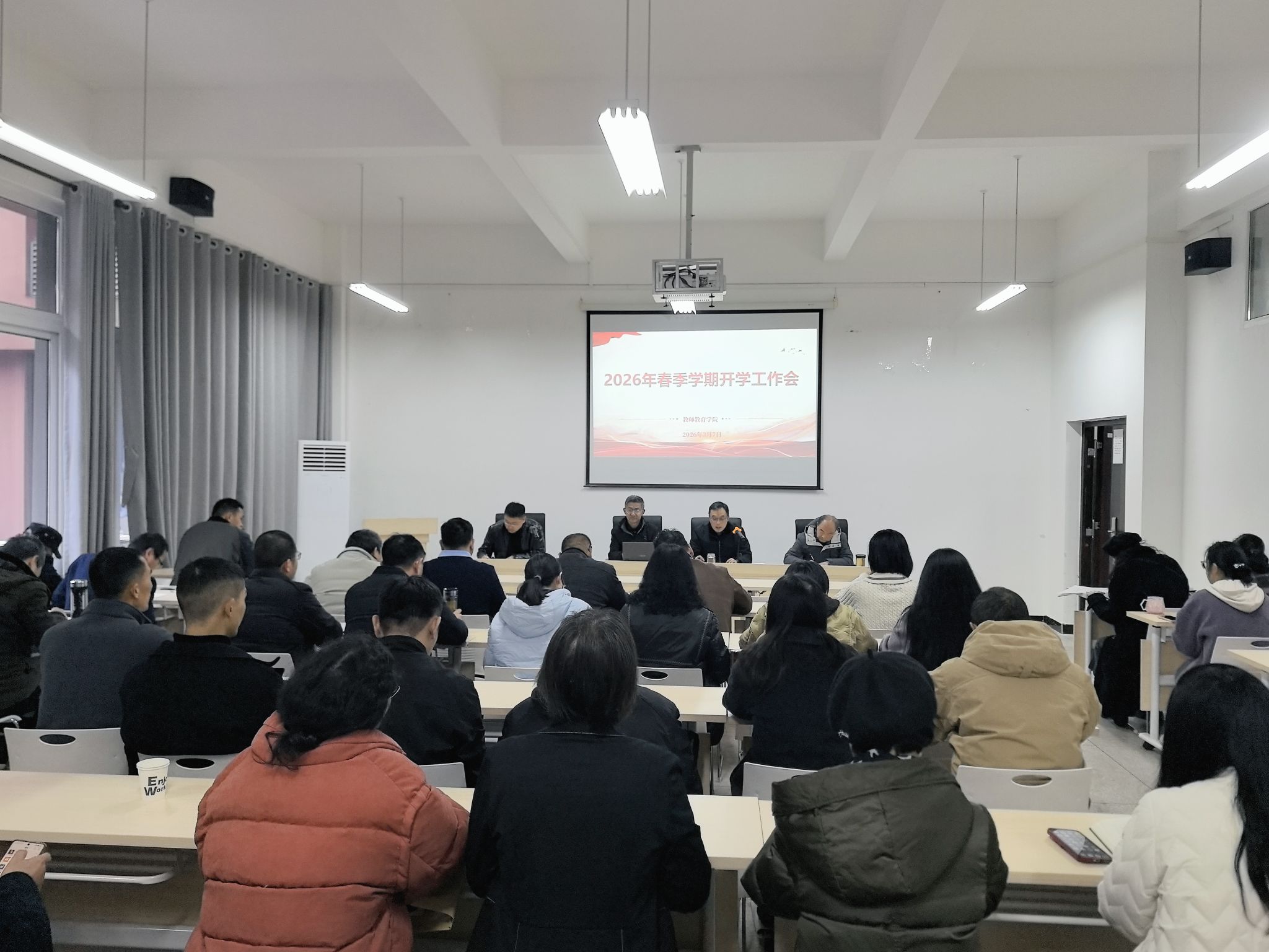 院长潘勇对寒假期间学院党建工作、专业监测、学科科研、安稳工作等进行了通报,并重点部署了学院2026年的工作任务。一是强化党建引领。以党的政治建设为统领,深化理论武装,推动党建与业务工作深度融合,不断发挥学院党组织的战斗堡垒作用。二是锚定根本任务。全面落实立德树人根本任务,为“十五五”建成库区高水平教师教育高地奠定坚实基础。三是建强师资队伍。实施“人才强院”战略,采取得力措施强化内培外引工作。四是聚焦学科建设。组建跨学科科研创新团队,重点围绕教育重点学科和博士立项建设,推动交叉学科融合创新。五是深化教学改革。强化教学组织建设,深化教学改革,推动教学质量稳步提升。六是提升育人质量。聚焦学生核心素养提升,强化必威西汉姆联指导与服务,全力推动学生就业与综合素质提升。