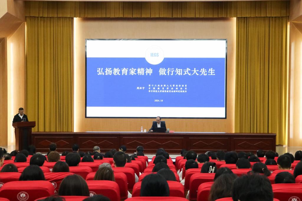 行是知之始,知是行之成。周教授以陶行知先生在重庆的经历作为开场,论述了今天讲述主题“如何做大先生”的必要性与及时性。讲座中,周洪宇教授深入分析了教育家精神论述的缘起及其基本内涵,全面解读了从“四有”好老师到教育家精神的内在含义,提出了习近平总书记对教育家精神论述的六个方面以及教育家的“七个有”并做出深刻阐述,强调教师应具有教育家精神。在阐述教育家精神的同时,周教授和同学们进行了互动。随后,周洪宇教授深入论述了陶行知先生的生平,认为陶行知是中国教育家的杰出代表,最后提出了教育家精神六个方面的培育路径。