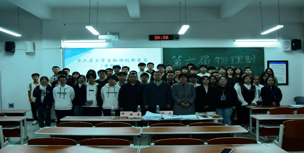 比赛最后,评委老师和参赛选手、现场观众们合影留念,宣告本次第六届大学生物理创新竞赛圆满谢幕。赛后,竞赛组根据评委们对各组公正的评分计算出最终分数。经过紧张激烈的答辩评比共计评选出一等奖1项,二等奖3项,三等奖6项,优胜奖9项;竞赛组委会根据校赛章程将推荐本次校赛中得分前50%的队伍参加重庆市第六届大学生物理创新竞赛。