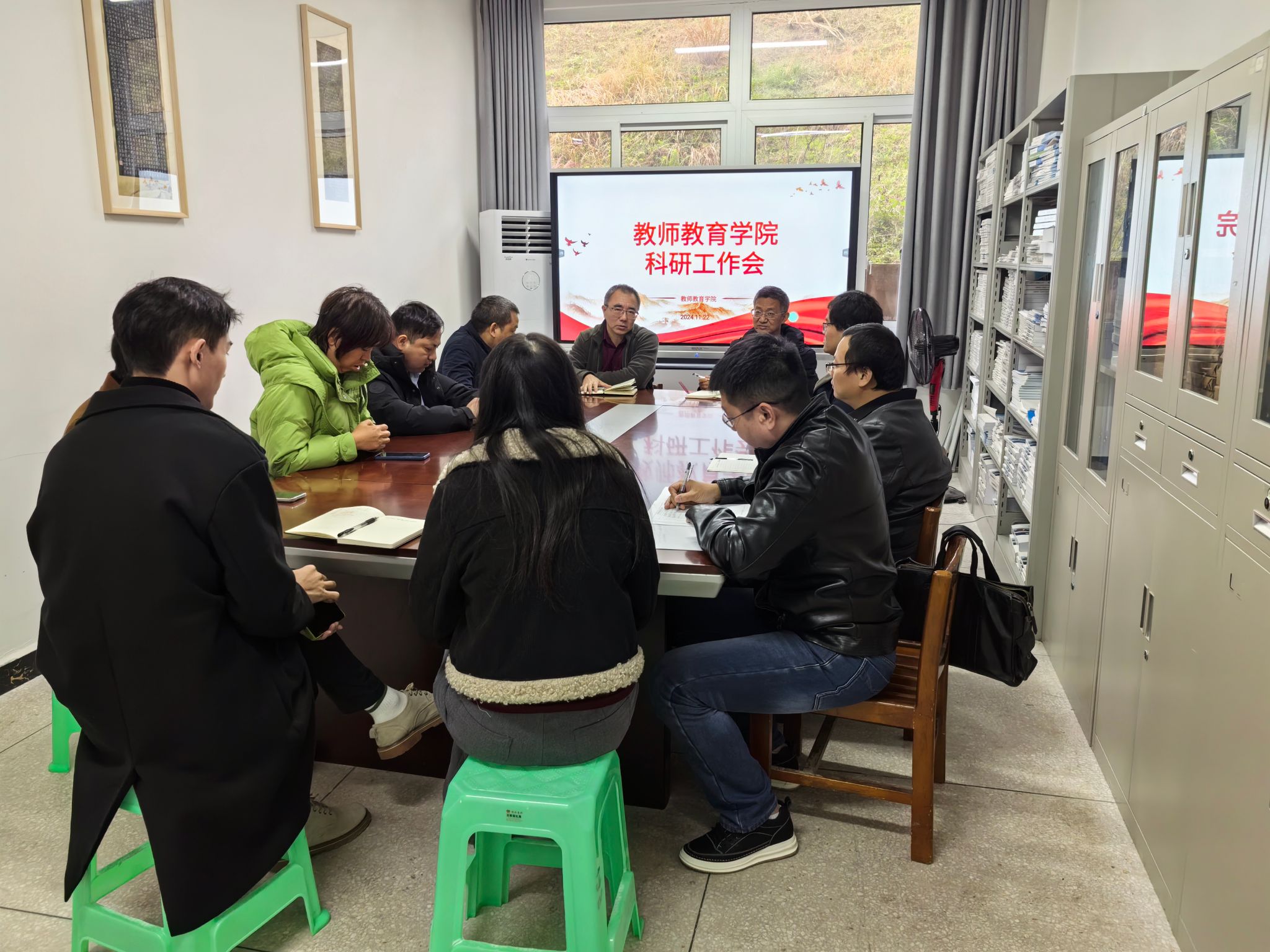 11月22日上午10:30,学院在博学楼3栋129会议室召开本期科研工作推进会,学院无课的部分高学历、高职称教师参会,会议由学院副院长蒋文峰主持。