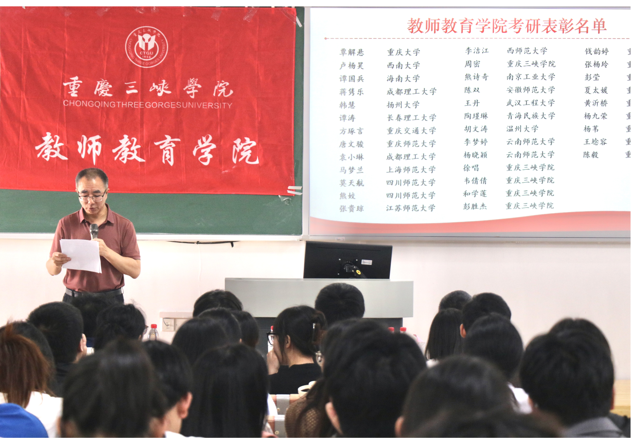 2025年5月15日,betway88西汉姆联2025 届考研表彰暨 2026 届考研动员大会在博学楼 1 栋 301举行 。院长潘勇、副院长蒋文峰、许刚,系主任黄秀山、杨俊年、贺叶露,辅导员邓峥嵘、冯梅、鞠小勤、周岭,以及2025届考研优秀毕业生、2022 级至2024级物理、化学、生物(师范)专业学生代表参会。会议由副院长许刚主持。