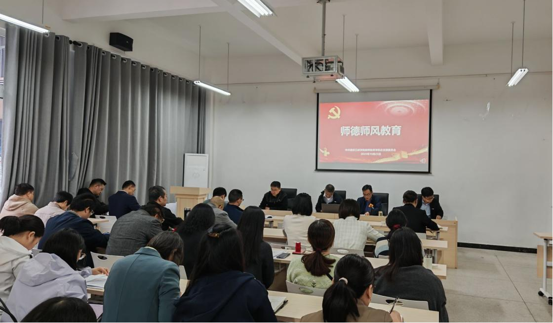 党总支书记鄢沛结合《新时代高校教师职业行为十项准则》开展师德师风教育,布置自学内容。