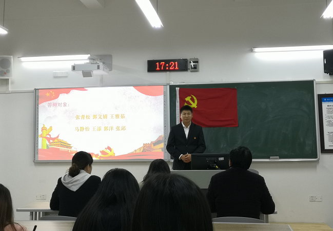 各位发展对象从个人情况、对党认识、入党动机、未来展望和不足之处等方面进行汇报和阐述,参会老师对答辩同学们进行提问 ,答辩内容涵盖党的基本理论知识、入党动机等等,主要内容为党的方针、政策等相关问题,旨在全面了解各位同学思想状态和知识的掌握情况,确保学生党员发展质量。