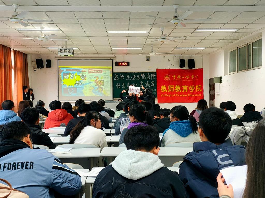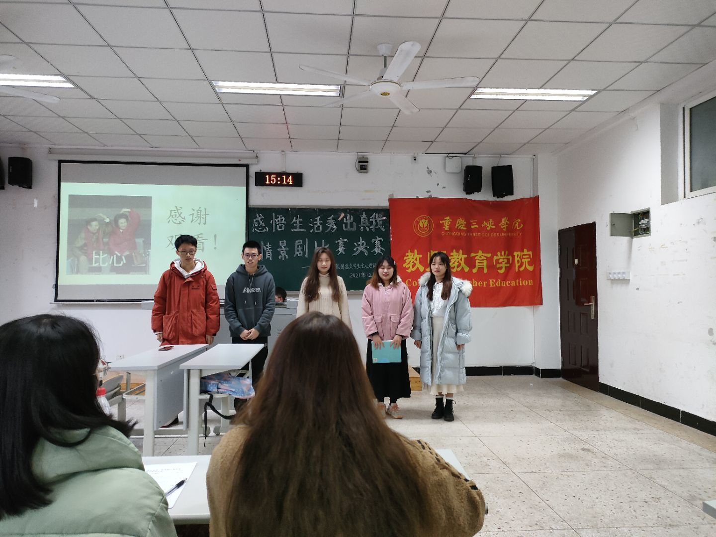在本次比赛中,同学们积极参与展现了当代大学生多才多艺的一面,参赛选手结合PPT和现场表演,在舞台上活泼演绎各个主题情景剧,不仅立足大学生实际生活,抒发真情实感,传播心理健康知识,更激发了同学们对身边学习生活的体验,对自己生活进行反思,更深刻地认识自我,懂得感悟生活。经过了8个组的真情演绎,评委公正评分,得出一等奖:春日部防卫队。二等奖:芋泥啵啵不要啵啵队、我们都是重庆人队、美少女战士队。三等奖:秀儿秀不起队、心理救援队。优胜奖:啊你说得都对队、玛卡巴卡队。比赛圆满结束。