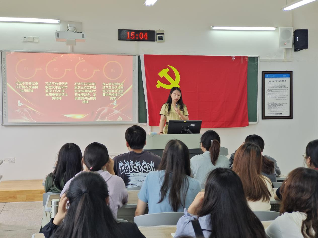 为坚定师生理想信念、增强使命担当、提升能力素质,betway88西汉姆联党总支书记薛娟和各党支部书记近日分别在科技楼连廊会议室和博学楼为全体师生党员和入党积极分子宣讲“学习贯彻习近平总书记视察重庆重要讲话重要指示精神”。