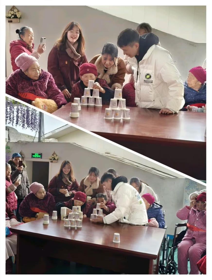 活动伊始,在支部与福利院的共同引导下,党员同志们与福利院老人暖心交流,并帮助行动不便的老人外出晒太阳;党员同志还与老人们热情互动,一起进行“叠纸杯”和“投乒乓球”两个趣味小游戏,福利院里充满了欢声笑语。大家细致温柔地帮助老人进行DIY相框制作,用心选择老人喜欢的颜色和装饰品并合影留念,制作出独一无二的相框。