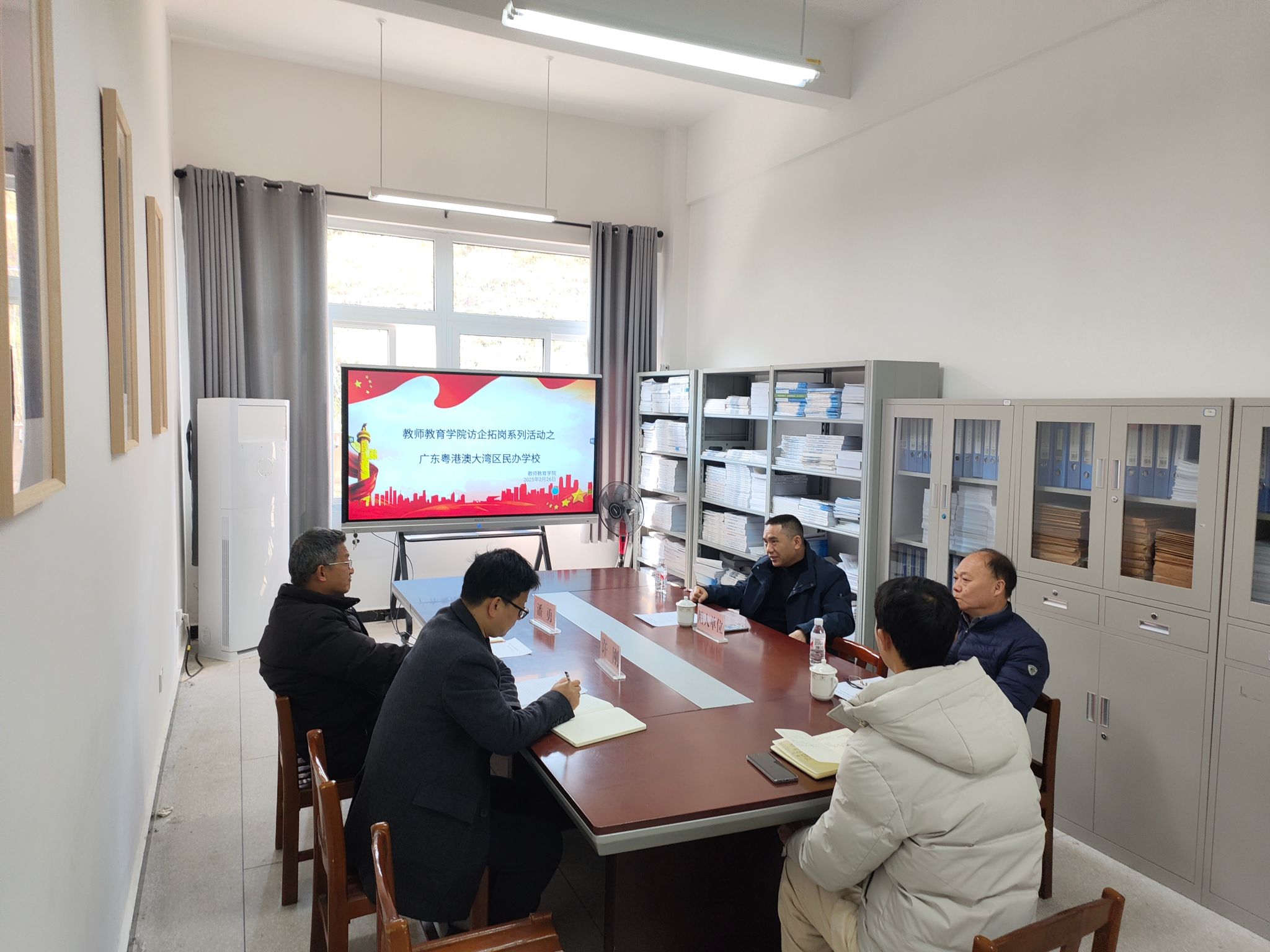 联络站唐老师详细分析了粤港澳大湾区民办学校的基本情况及师资需求,指出区域内对物理、化学、生物毕业生的迫切需求。2021级本科生辅导员周岭站位毕业生立场,为毕业生谋求切实利益。院长潘勇向联络站老师介绍学院基本情况,希望双方在实习和就业方面加强合作,进一步提升人才培养质量和改进学生就业工作。副院长许刚发言道,当前部分毕业生受传统就业观念束缚,希望能进一步转变学生就业观念,先就业再择业。为此,学院教师将对学生积极宣传民办学校,并进行思想上的合理引导。