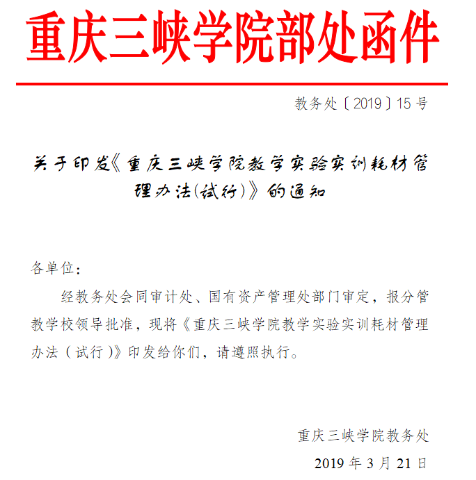 重庆三峡学院教学实验实训耗材管理办法(试行)