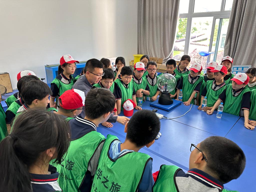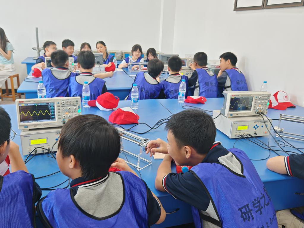 研学中,学生们学习和参与了声音的速度、光电效应、薄透镜的成像规律物理实验。